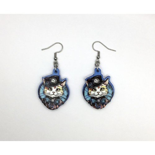 Tags: steampunk cat, steampunk earrings, laser cut jewellery, illustrated jewellery